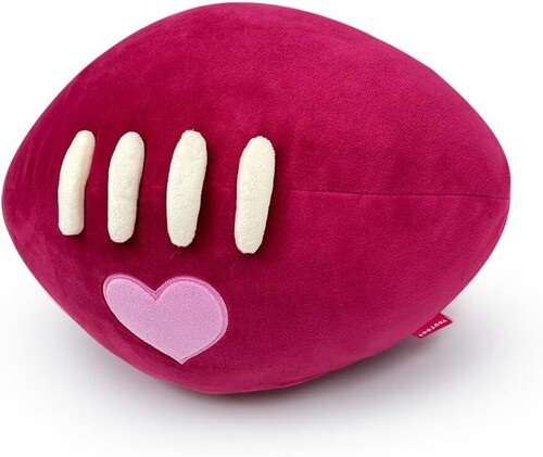 Show off your favorite sport with this extremely soft and plump rugby ball. The base of the plush is a maroon color with white stitching. Underneath the stitching is a cute small pink heart.