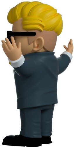 Wallstreet Bets Kid enters the fray and is ready to make moves. Standing at 4.5 inches tall, arms outstretched in a stylish gold buttoned grey two piece suit, black shoes and a white shirt with red tie to finish the look. His blonde hair slicked back with an immaculate fade and stylish thick black sunglasses accentuating his cool facial expression.