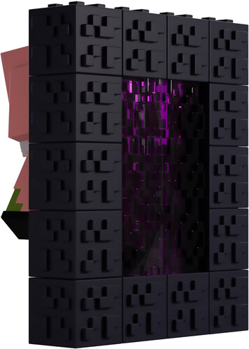 The exterior of their packaging sees a swirling nether portal in a dark field. While the interior surrounds them in brown dirt blocks, this then continues onto the protective sleeve as their figure can be seen through the large, clear window at the packaging’s front.