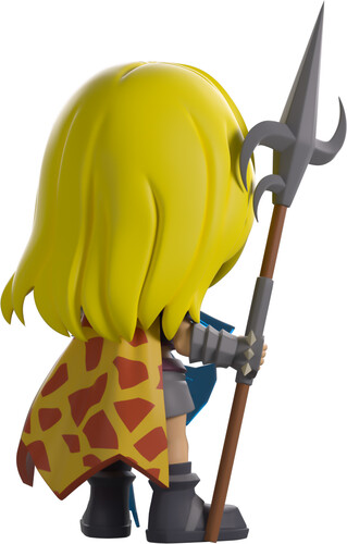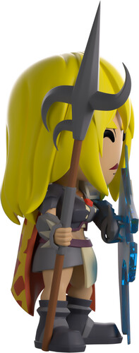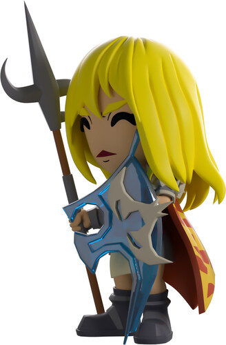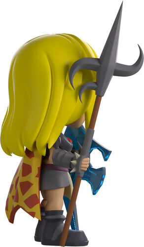 Not even the afterlife could stop Nieve from her Youtooz debut! Standing at 4.8 inches tall with long blonde hair flowing around her sincere face, she holds a Zamorian hasta in her right hand and a translucent elysian spirit shield in the other. With a long red and yellow fire cape hanging from her shoulders, she wears an amulet of fury around her neck along with full Bandos armour over her body and protective arm guards.