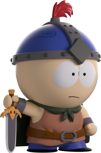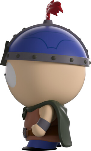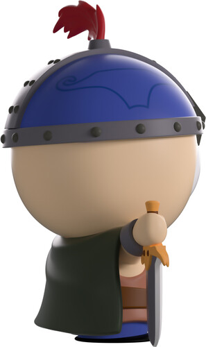 Stan returns to Youtooz to lend his sword to your mighty battle! Standing at 4.1 inches tall with his right hand holding onto the hilt of his sword with the point resting on the ground, a blue helmet with metal plating that runs around the sides and center covers his head as a short red feather sticks out from the top. With a dark green cloak hanging from his shoulders, a brown belt cinches the waist of his sleeveless shirt as he wears blue pants.