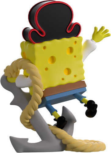 SpongeBob is back, and he couldn't be more excited to be back on the Flying Dutchman, living his pirate dreams! He stands at 4.9 inches tall as he is standing on an anchor, with a rope wrapping down the anchor.