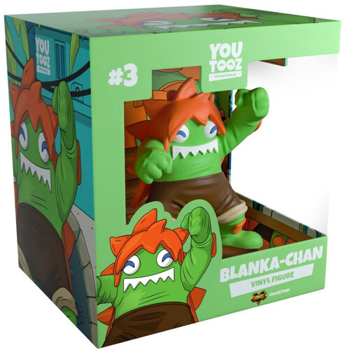 Ready for battle, Blanka Chan’s double-walled window box is illustrated after a tropical city. This collectible ships in a matte, embossed, protective outer sleeve.