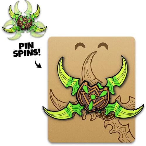 Illidan is on vacay and lent us his Warglaives to sharpen in the meantime! At 2 inches wide with a shiny, high quality finish, this pin is designed with the two vibrant green Warglaives attached at the centre by an axis so they can spin around viciously! This pin is perfect as decoration on a cork board or showing off on your tote bag, backpack, fanny pack, jacket or wherever your heart desires, these pins are sure to turn heads and catch the eyes of anyone you pass, letting them know just who's ready for battle!
